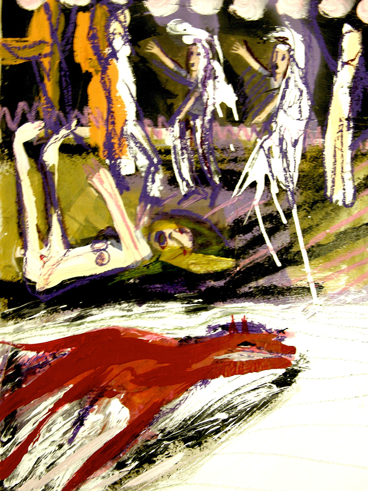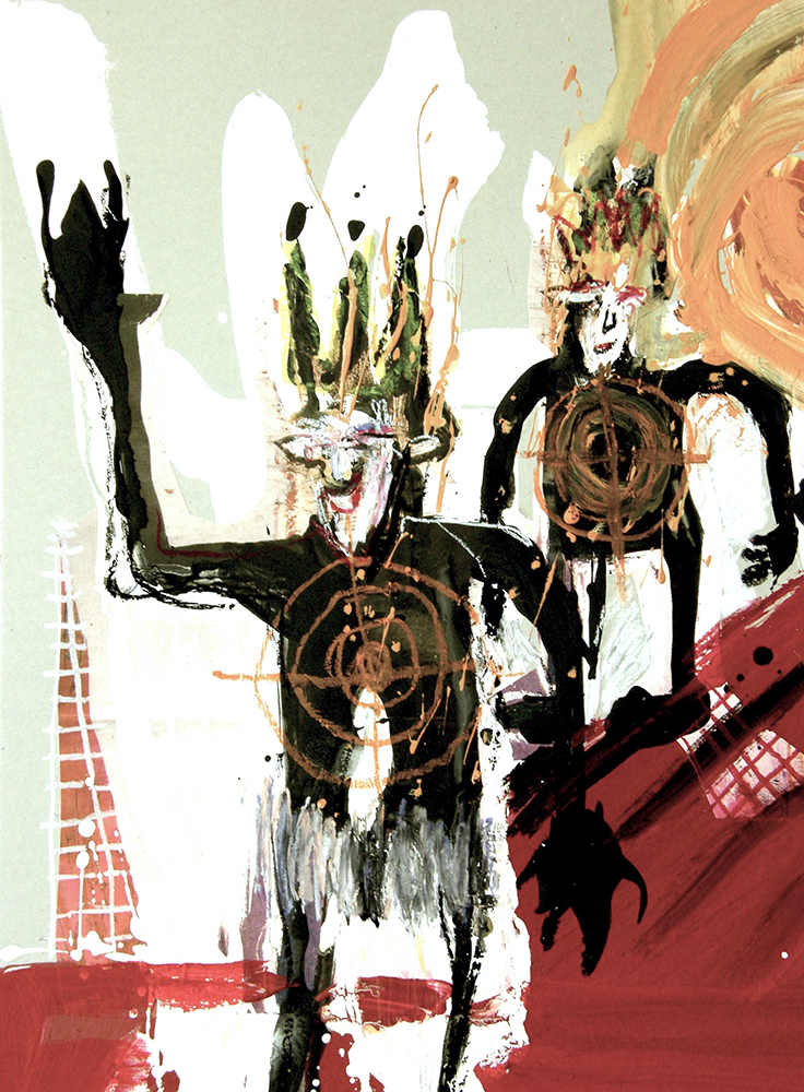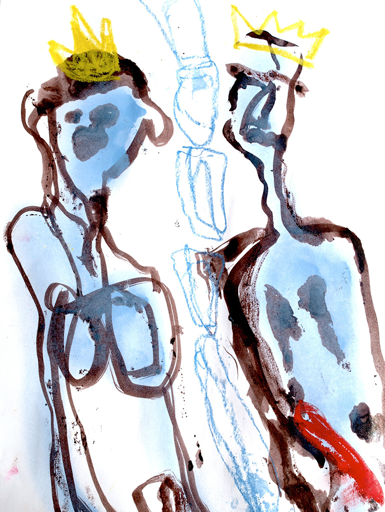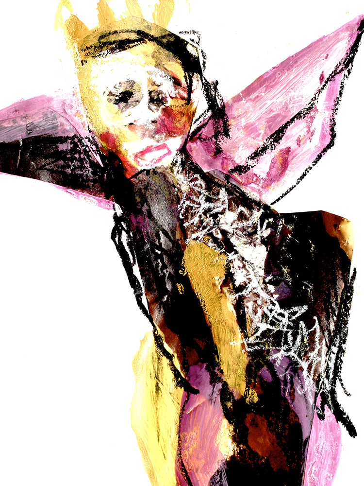 Der König ist tot, es war einmal. „Es war einmal“. 66 Zeichnungen. Mischtechnik, Druck, Collage auf Bütten. Größe je 50 cm x 70 cm Künstlerbuch „Der König ist tot“