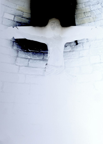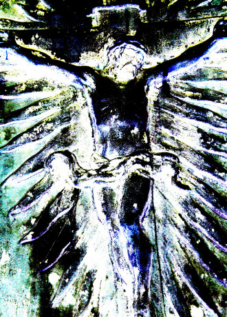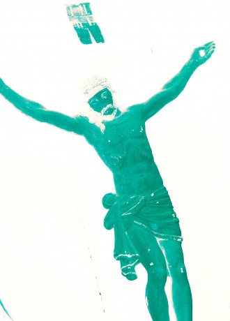 „Kruzifixe“. Übermalte Drucke, Fotos und Collagen, Größe variabel.