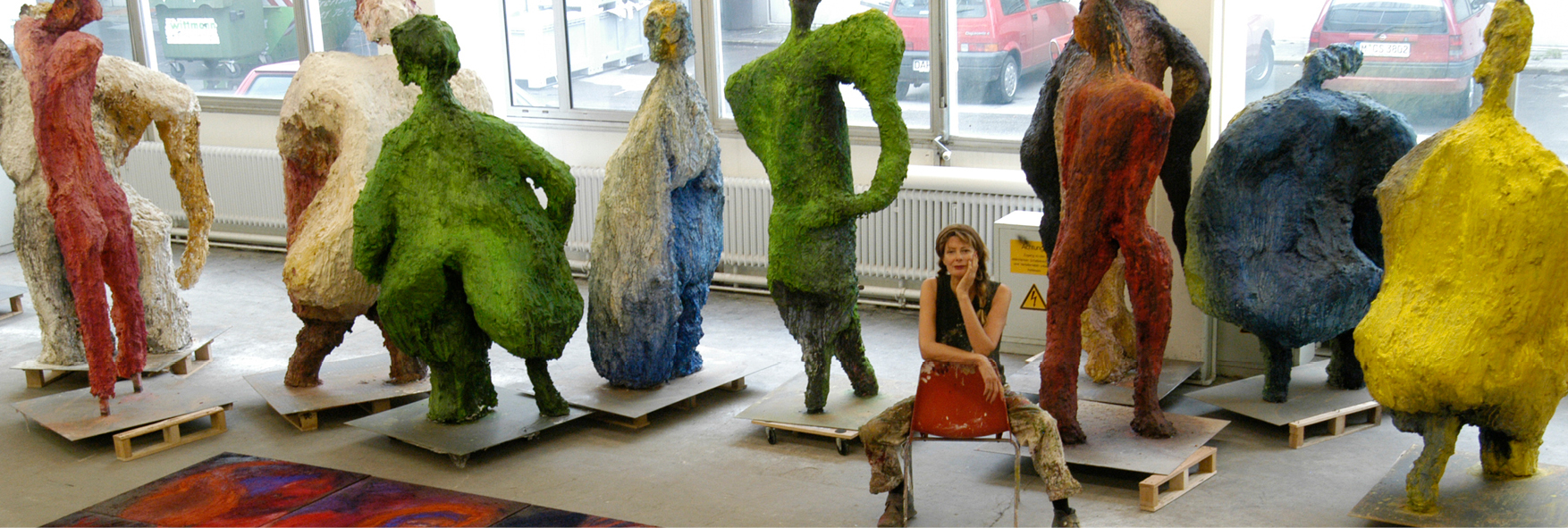 „Die Skulpturen“. Stahl, Draht, Gips, Beton, Pigmente. Höhen von 220 cm bis 360 cm.